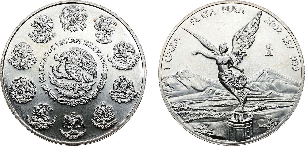 Серебро 999 пробы. 31,1г. Мехико. KM 639. UNC.