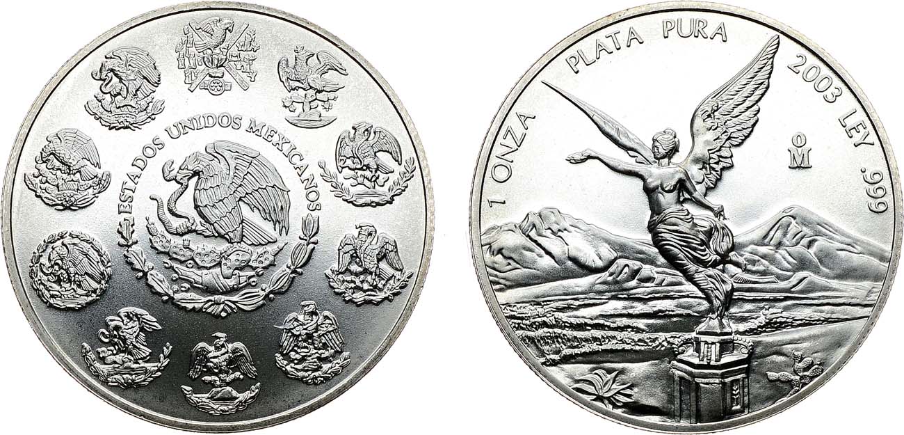 Серебро 999 пробы. 31,1г. Мехико. KM 639. UNC.