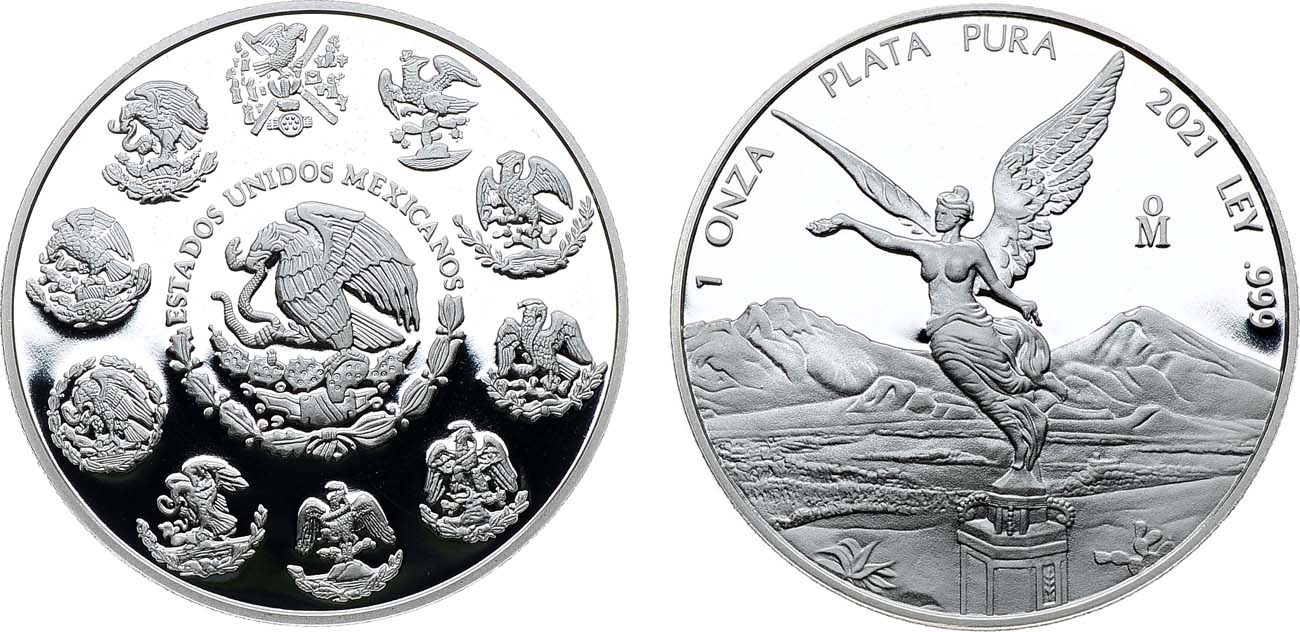 Серебро 999 пробы. 31,1г. Мехико. KM 639. PROOF.