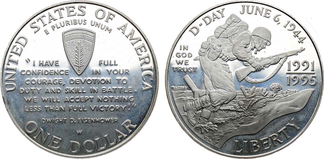 Серебро 900 пробы. 26,73г. Вест-Поинт (W). Тираж: 342.041 экз. KM 244. PROOF.