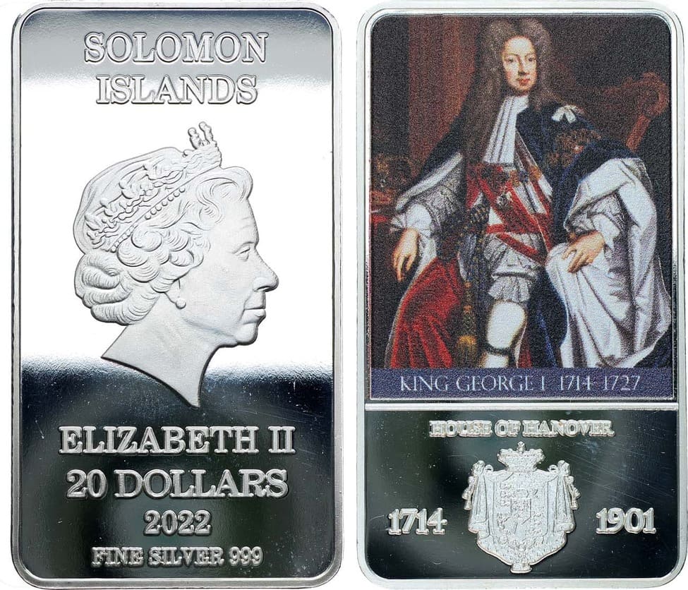 Серебро 999 пробы. 30,36г. Размеры 50х28 мм. Цветное покрытие. PROOF.