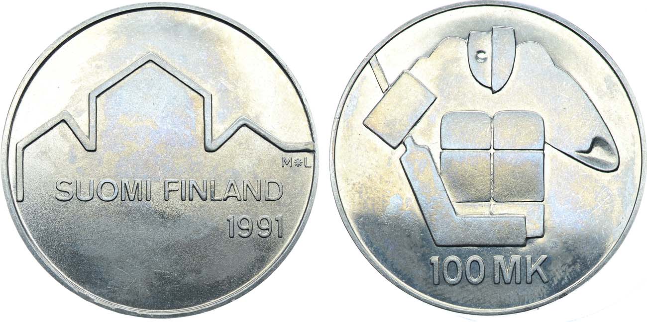 Серебро 830 проба. 24г. Хельсинки-Вантаа. Тираж 150000 экз. KM 69. BU.