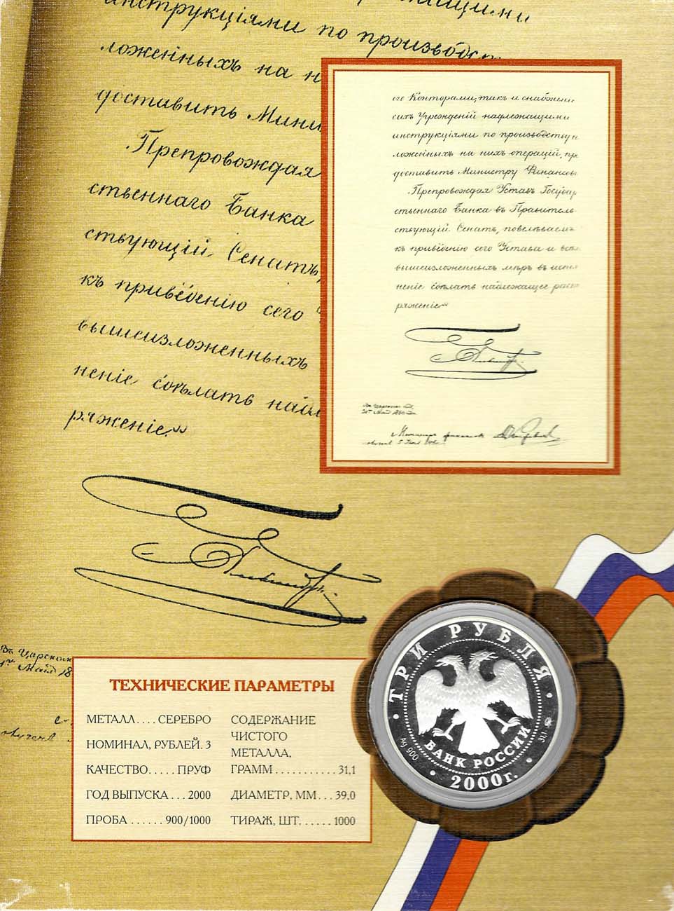 Серебро. 34,88г. Московский монетный двор. Проба 900. Тираж 3000 экз. Медальер В.М. Харламов. Художник А.В. Бакланов. ЦБ РФ 5111-0084. PROOF.