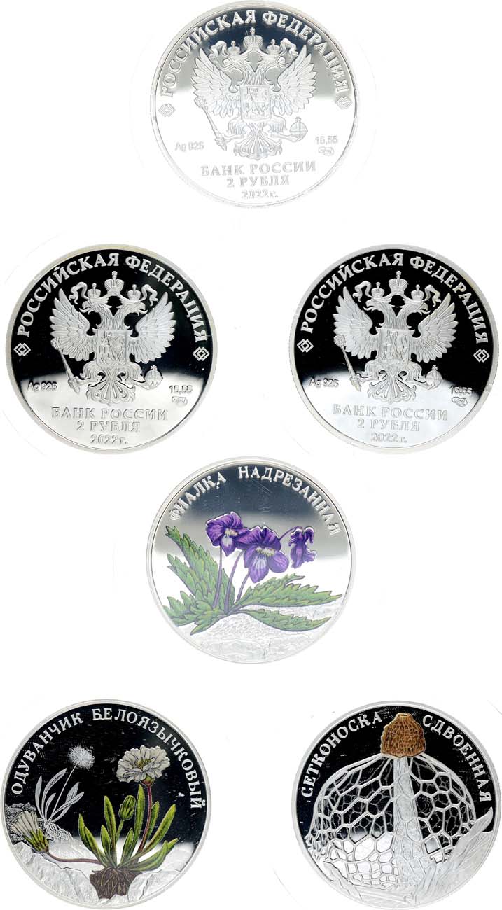 Серебро 925 проба. 17г. 2 рубля 2002 года. Фиалка надрезанная. СПМД. Серебро. 17 г. Цветная эмаль. Медальеры: А.А. Долгополова (аверс), А.Д. Щаблыкин (реверс). Тираж 5000 экз. ЦБ РФ 5110-0174. PROOF. 2 рубля 2002 года. Одуванчик белоязычковый. СПМД. Серебро. 17 г. Цветная эмаль. Медальеры: А.А. Долгополова (аверс), А.Д. Щаблыкин (реверс). Тираж 5000 экз. ЦБ РФ 5110-0172. PROOF. 2 рубля 2002 года. Сетконоска сдвоенная. СПМД. Серебро. 17 г. Цветная эмаль. Медальеры: А.А. Долгополова (аверс), А.Д. Щаблыкин (реверс). Тираж 5000 экз. ЦБ РФ 5110-0173. PROOF. PROOF.