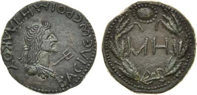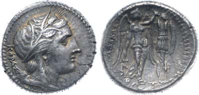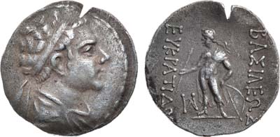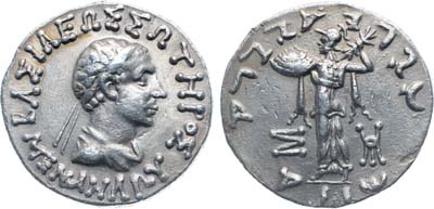 Серебро. 16,89г. Аверс: драпированный бюст царя в диадеме вправо. Реверс: фигура стоящего Аполлона, в левой руке держит стрелу, в правой - лук, слева в поле монограмма; легенда "BAΣIΛEΩΣ EYKPATIΔOY". VF.
