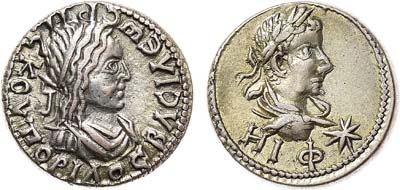 Серебро. 4,15г. Аверс: голова Геракла вправо, в головном уборе из львиной шкуры. Реверс: "AΛEΞANΔPOY" Зевс сидит слева на троне без спинки, правая нога отведена назад, ступни на табурете, орел в вытянутой правой руке, скипетр, упирающийся в землю, в левой; восьмиконечная звезда в левом поле, наконечник копья вверх во внешнем правом поле. Price 1759. XF.