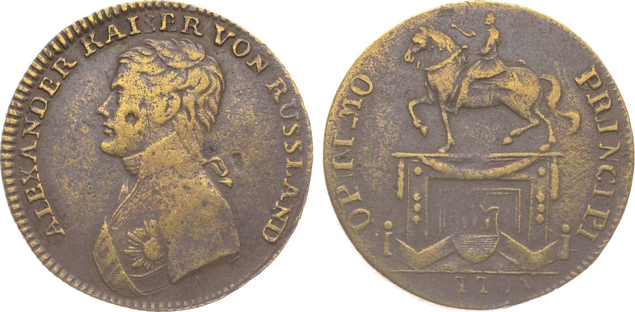 Бронза. 3,19г. Диаметр 23,6 мм. Германия, Нюрнберг, мастерская И.Я. Лауэра. Руденко С.5.78. (R2). VF-.