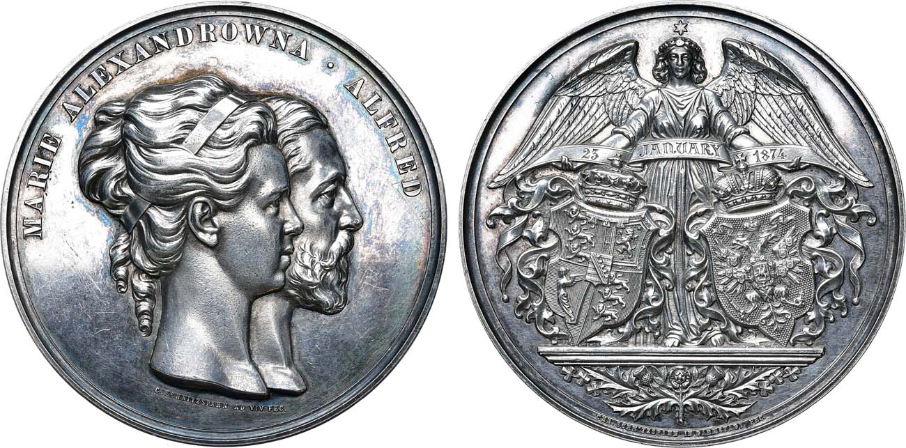 Серебро. 107,51г. Диаметр 64 мм. Медальер К. Шнитцшпан (аверс внизу на фоне под портретами: "C. SCHNITZSPAHN AD VIV.FEC."; реверс внизу по краю: "CHR. SCHNITZSPAHN IN DARMSTADT FEC."). Дьяков 809.1(R3). UNC.