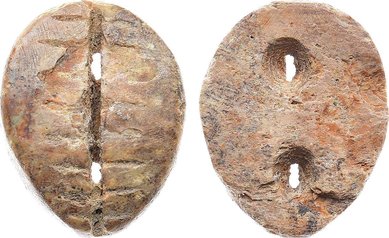 Кость. 1,68г. Размер 21х16х5 мм. С двумя сквозными отверстиями. XF.
