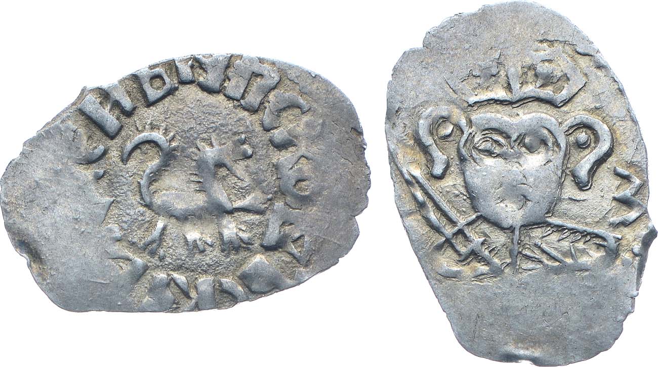 Серебро. 0,72г. Аверс: барс вправо, украшения в виде точек, круговая легенда. Реверс: князь Довмонт с мечом, литера "З" справа, украшения в виде точек. ГП2 7645В (R-III). UNC.
