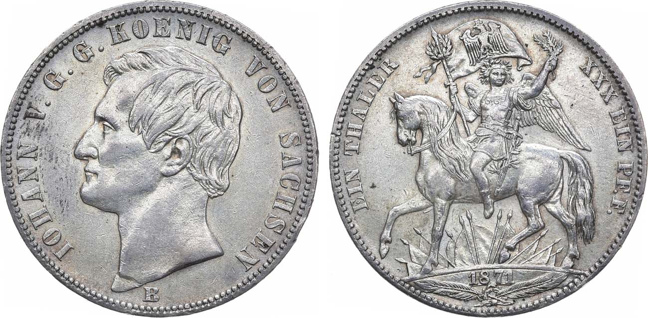 Серебро. 18,46г. Ганновер (В). Тираж 44844 экз. Гурт: "GOTT SEGNE SACHSEN". Отчеканена в память победы над Францией. KM 1230. AKS 159. Davenport 898. Jaeger 132. Thun 351. Kahnt 473. AU.