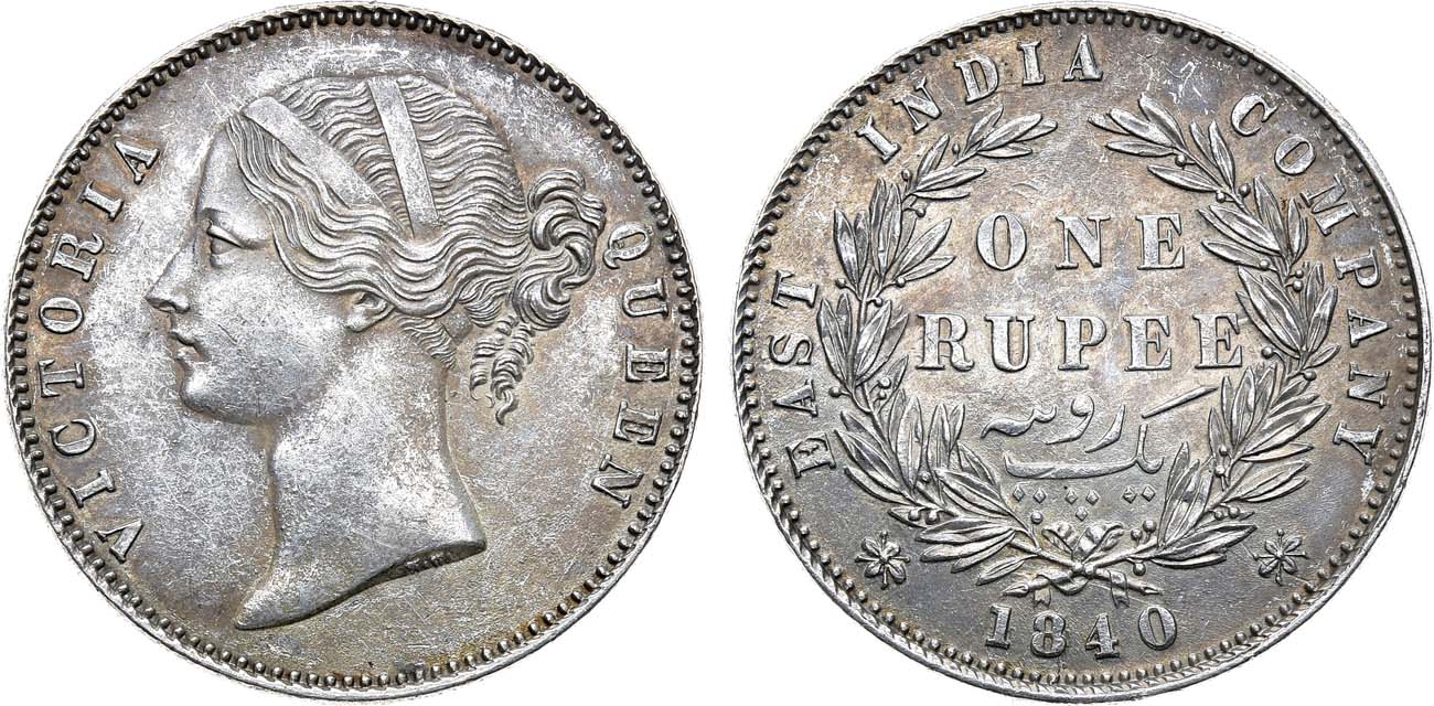Серебро. 11,58г. Мадрас. Аверс: малые буквы. Реверс: 28 ягод в венке. KM 458.6. XF/AU.
