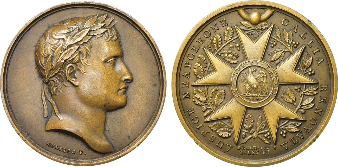 Бронза. 38,06г. Диаметр 41 мм. Парижский монетный двор, Франция. Выпуск после 1881 года. Аверс: медальер Б.Андрие (внизу под портретом на поле "Andrieu F."). Реверс: медальер Л.Жалей (внизу на поле "DENON DIRt. JALEY Ft."). Клейма на гурте: Парижского монетного двора (рог изобилия), название металла «BRONZE». Bram 310. AU.