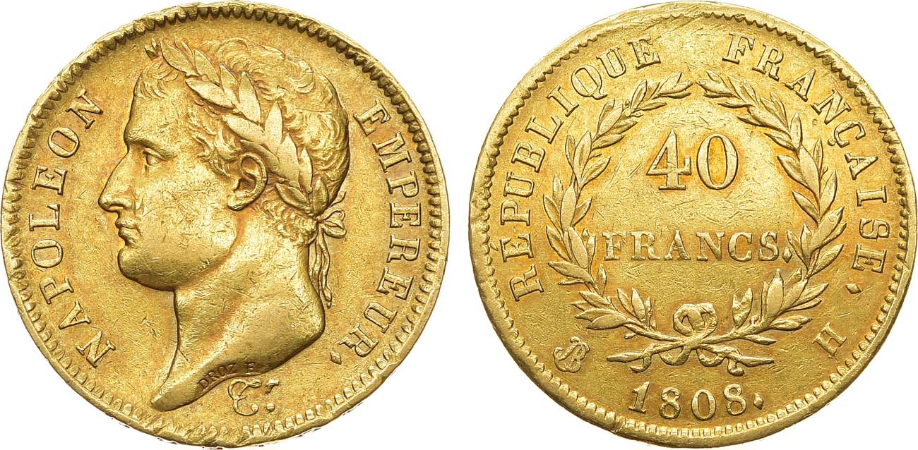 Золото. 12,84г. Ла-Рошель (H). Тираж 12000 экз. KM 688. XF-.