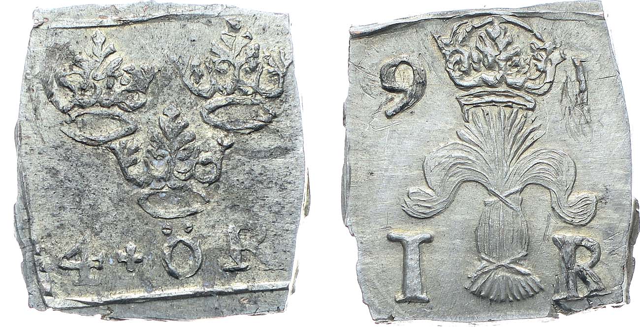 Серебро. 3,54г. Размер 20х18,5 мм. Клиппа (квадратная монета). KM UC# 44. UNC.