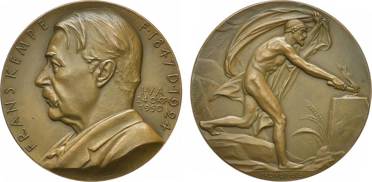 Бронза. 38,34г. Диаметр 45 мм. Стокгольм. Медальер Фрик Линдберг (на реверсе на 9 часов "FRIK LINDBERG"). UNC.