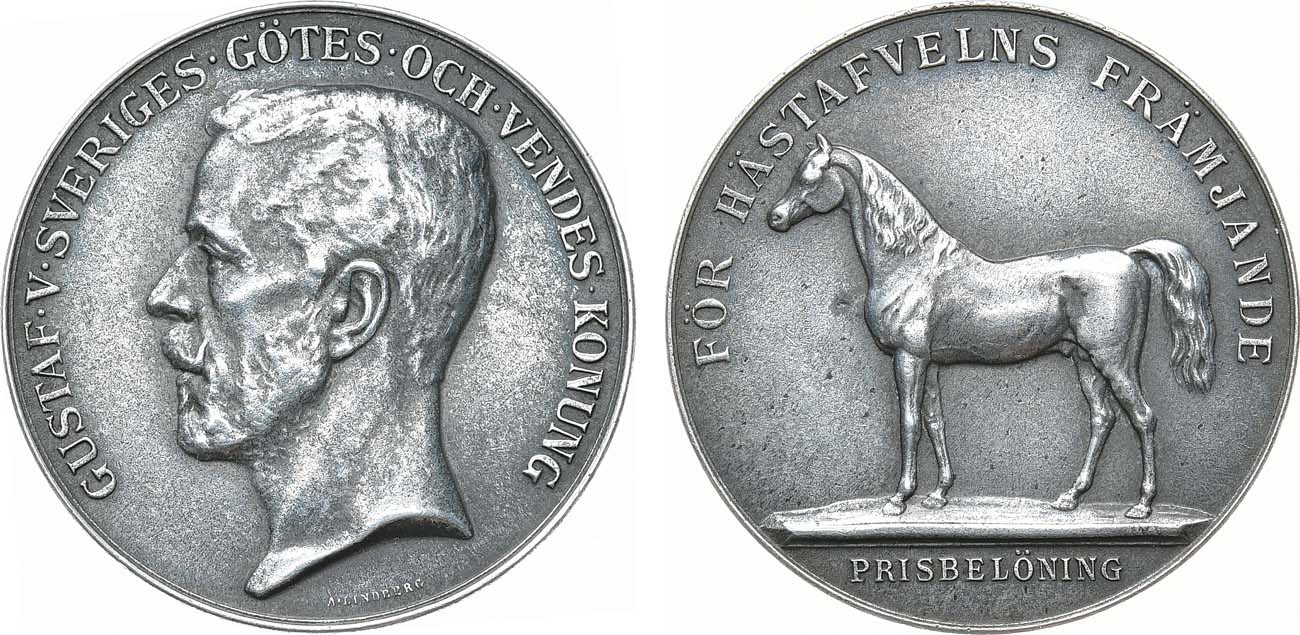 Королевство Швеция. Король Густав V. Медаль 1907-1950 гг. За содействие в разведении лошадей.
