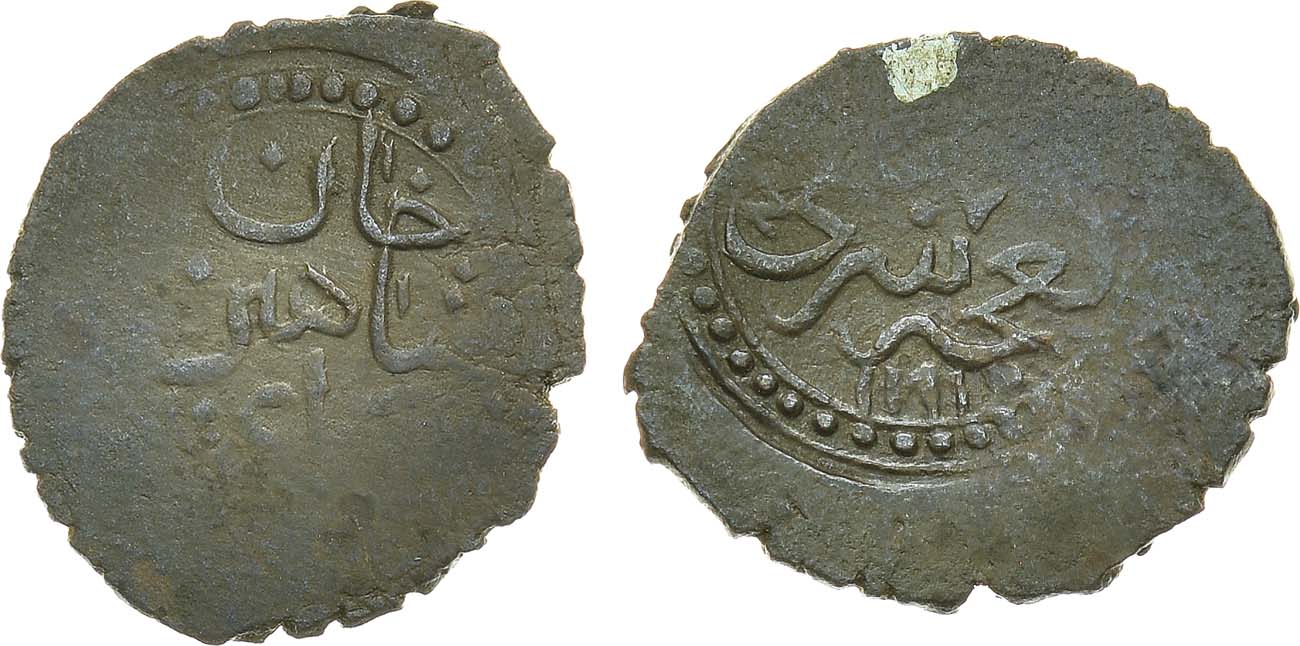 Биллон. 1,44г. Бахчисарайский монетный двор. Аверс: Тамга вверху, 4-ка арабская слева. Реверс II типа. Подобна Сариев 299(R). VF.