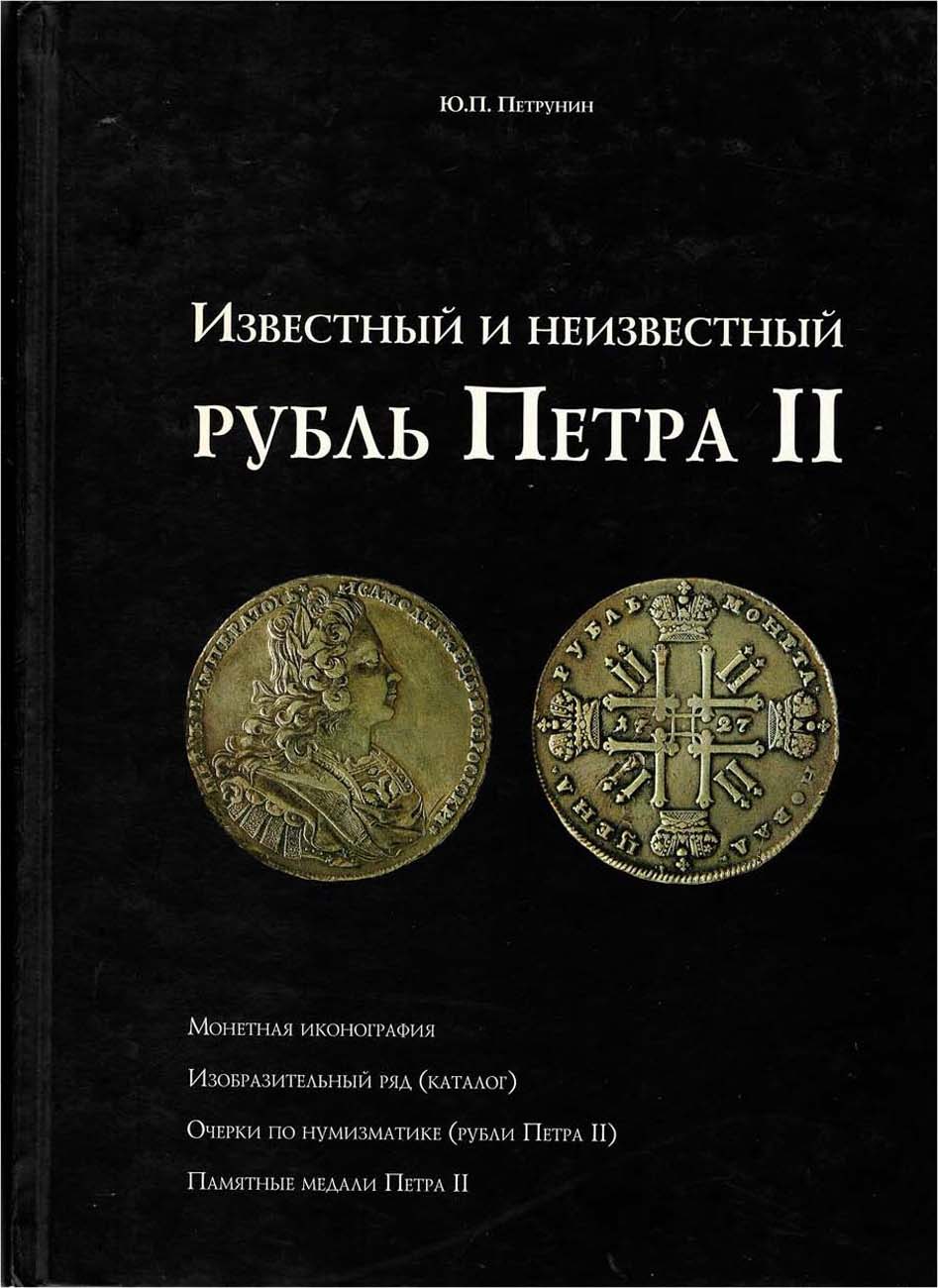 Москва, 2007 г. 352 стр. Тираж 300 экз. Монетная иконография. Изобразительный ряд (каталог). Очерки по нумизматике (рубли Петра II). Памятные медали Петра II. Иллюстрированное издание, позволяющее наглядно представить рубли Петра II прежде всего, как историко-художественный памятник, рассмотренный через призму монетной иконографии. Изобразительный ряд включает более 200 разновидностей рублевиков, выпущенных в 1727-1729 годах. Из них более половины публикуется или каталогизируется впервые. Анализ широкого спектра нумизматического материала позволил автору в виде очерков по новому осветить некоторые малоизученные стороны монетного дела и медалийной истории периода царствования Петра II.