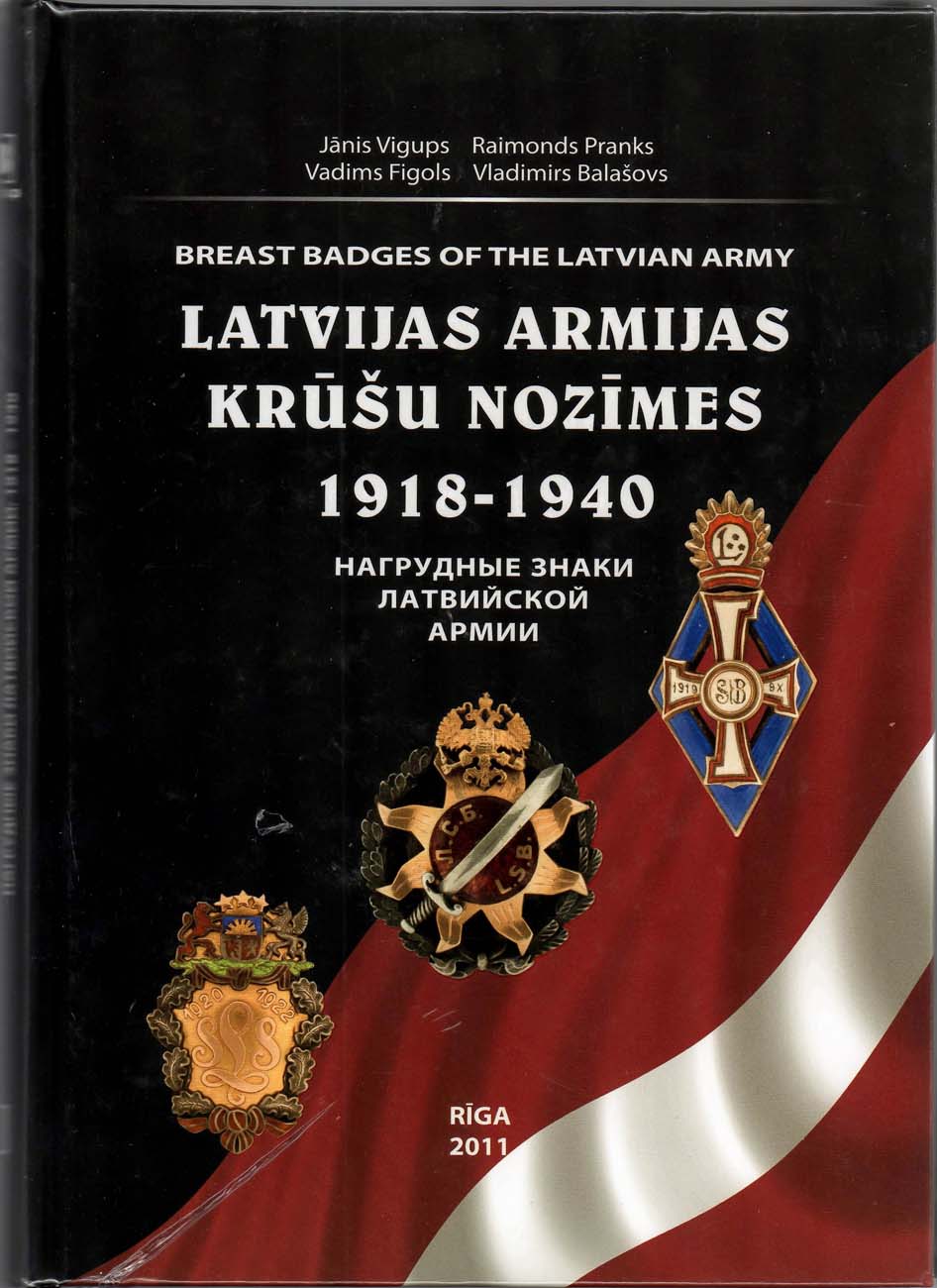 Рига, 2011 г. 496 стр. Первый том серии книг о государственных наградах и нагрудных знаках Латвийской республики включает обобщённые материалы о нагрудных знаках Латвийской армии 1918-1940 гг.