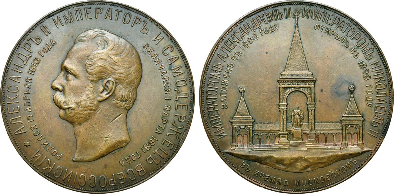 Бронза. 200,89г. Диаметр 78 мм. Санкт-Петербургский монетный двор. Медальер А.А. Грилихес (сын) (аверс: под обрезом "ГРИЛ. СЫНЪ"; реверс: на обрезе справа "ГРИЛИХ. СЫНЪ Р."). Смирнов 1148/а. Дьяков 1261.1(R1). AU.