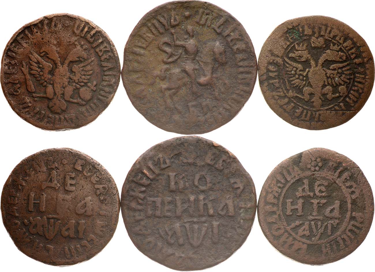 Медь. Денга 1703 года. Медь 3,66 г. F. 1 копейка 1710 года. БК. Медь. 5,99 г. VF-. Денга 1711 года. Медь. 4,67 г. F. F/VF.