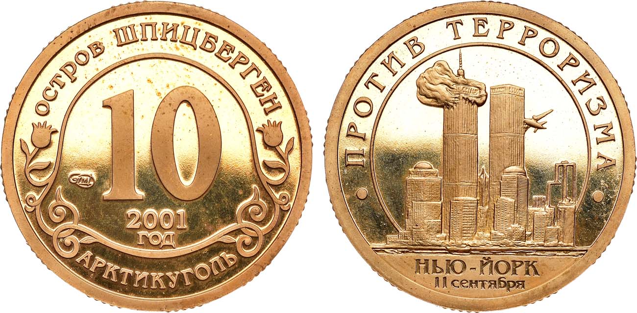 Алюминиевая бронза. 11,82г. Пробный выпуск Шпицбергена 2001 года. Санкт-Петербургский монетный двор. Реверс: без надписи "РАЗМЕННЫЙ ЗНАК". Тираж 10 экз. Фролов 4.3.2. PROOF.