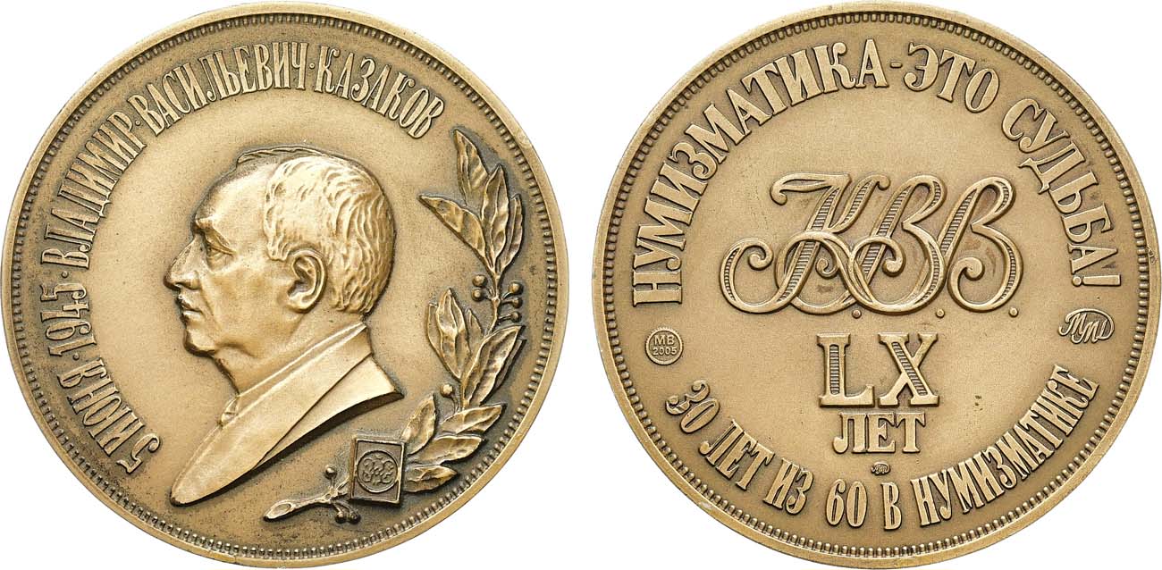Казаков Владимир Васильевич — коллекционер и нумизмат-исследователь, автор книг и статей по нумизматике императорского периода российской истории. Медаль изготовлена по заказу ООО «МастерВижн».