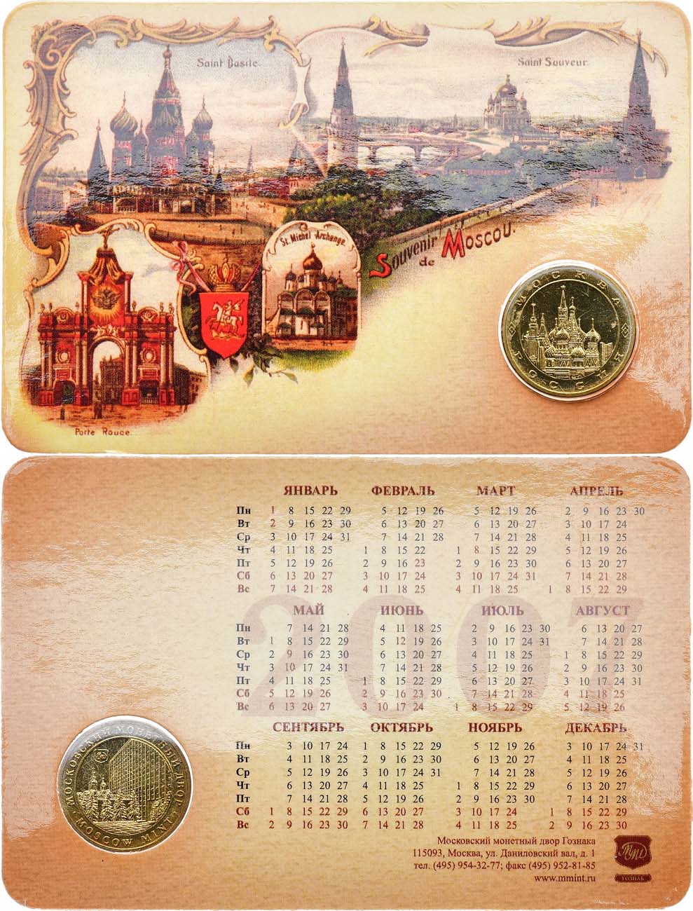 Жетон вложен в оригинальный картонный буклет с календариком.