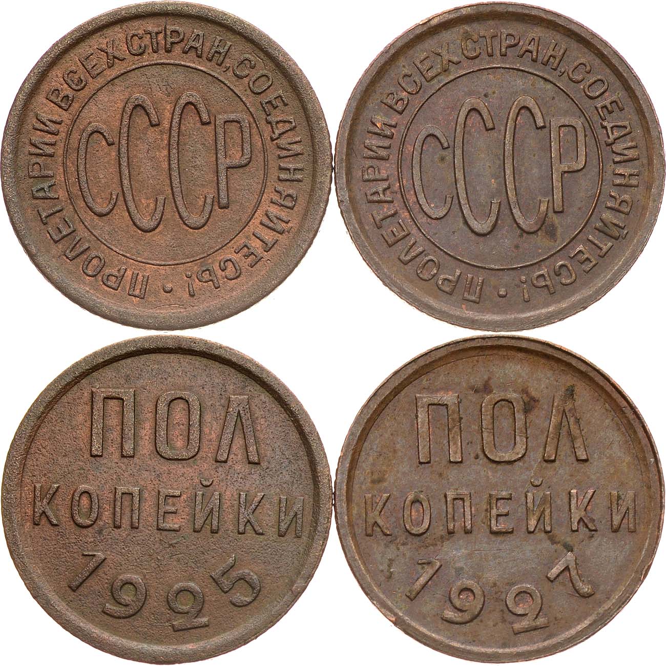 Полкопейки 1925 года. Медь. 1,56 г. ФедоринVI 1 (10 у.е.). XF-. Полкопейки 1927 года. Медь. 1,62 г. ФедоринVI 2 (10 у.е.). AU. XF/AU.