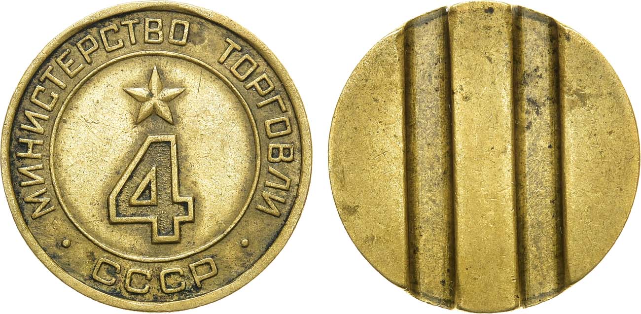 Жетон для обслуживания торговых автоматов, столовых ресторанов и кафе Министерства торговли СССР 1955-1977 года.