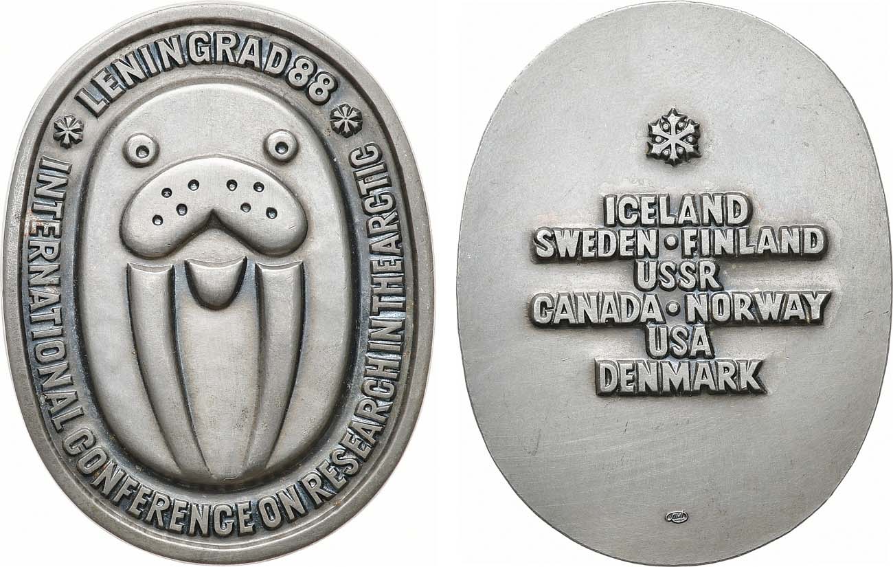Мельхиор. 73,84г. Размеры 43х55 мм (овал). Ленинградский монетный двор. Медальер А.В. Бакланов (без подписи). Тираж 700 экз. Шкурко, Салыков 1821. UNC.