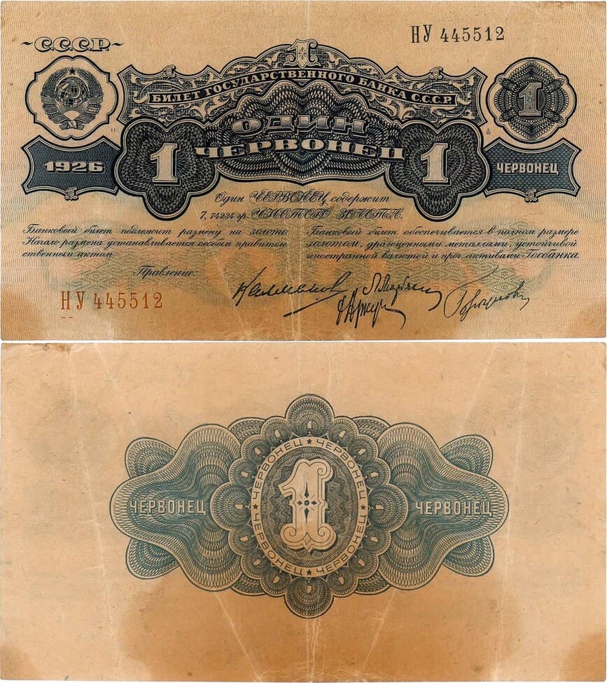 Серия НУ 445512. 4-ый выпуск (1932-1934 гг.). Кардаков IV.318 (2 д.). Денисов Б-7.4. Рябченко 1346б. ZG2№2.18.6. VF/XF.