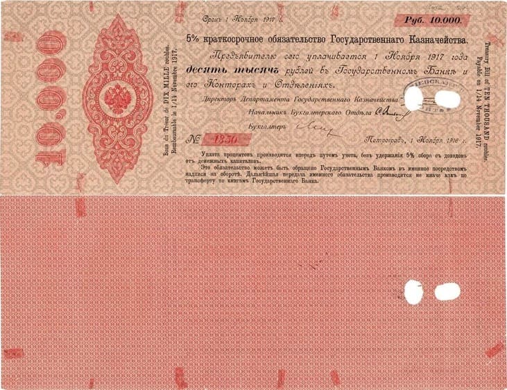 Размер 322х122 мм. №1350. Оплата через 12 месяцев. 1916 - 1917 гг. Директор Д. Кутлер. Кардаков VI.4a. VF.
