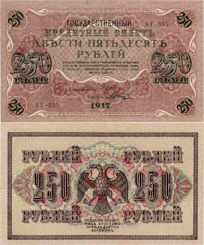 Серия АГ-335. Выпуск Советского Правительства (1917-1918 гг.). Подписи: Управляющий - И.П. Шипов, кассир - Шагин. ZG2 №1.22.2. UNC.