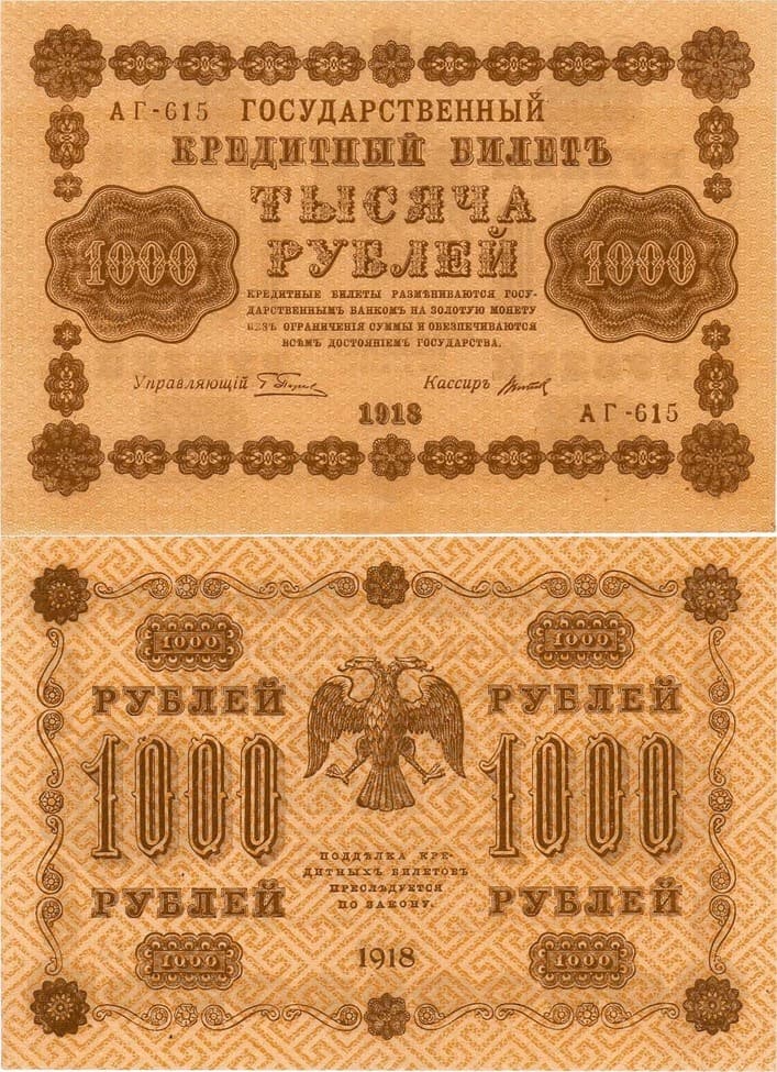 Государственные Кредитные Билеты образца 1918 г. выпущены на основании декретов СНК РСФСР от 15 мая 1919 г и 21 октября 1919 г. В обращении до 1922 г.