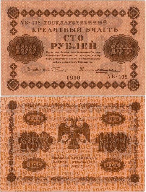 Государственные Кредитные Билеты образца 1918 г. выпущены на основании декретов СНК РСФСР от 15 мая 1919 г и 21 октября 1919 г. В обращении до 1922 г.