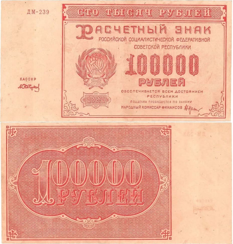 Серия ДМ-239. Народный Комиссар Финансов: Н.Н. Крестинский, кассир: А.Сапунов. ZG2 №2.6.31. AU.
