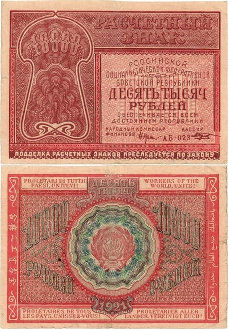 Серия АБ-023. Подписи: Нарком Финансов - Н.Н. Крестинский, кассир - Козлов. Водяной знак - связанные 6-лучевые звезды. ZG2 №2.6.25. XF.