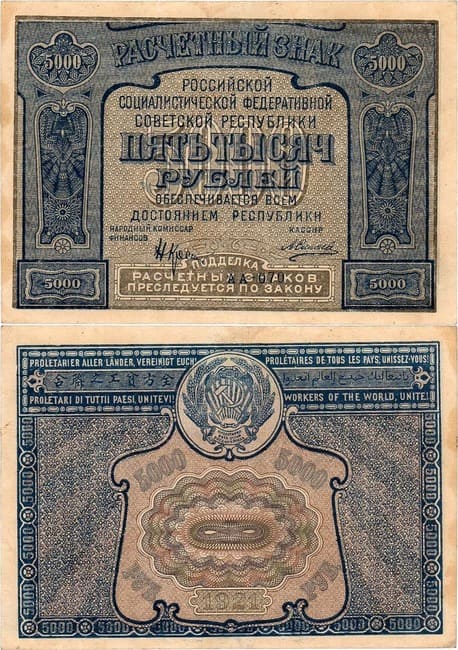 Серия АА-070. Подписи: Нарком Финансов - Н.Н. Крестинский, кассир - Силаев. Без ошибки в слове "PROLETARIER". ZG2 №2.6.23. AU.