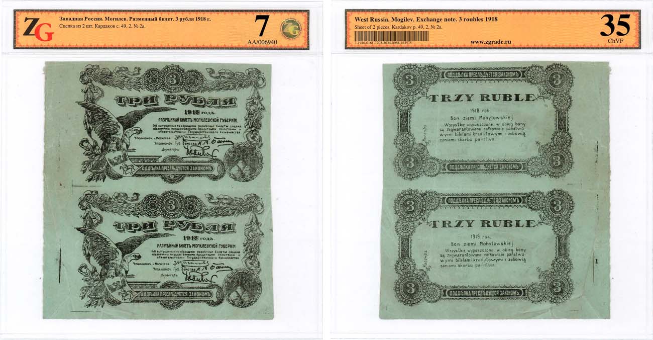 Без номера и подписи кассира. Размер 148х164 мм. Рябченко и Орлов - не описан. В слабе ZG с оценкой сохранности 7/35. 35 Ch VF.