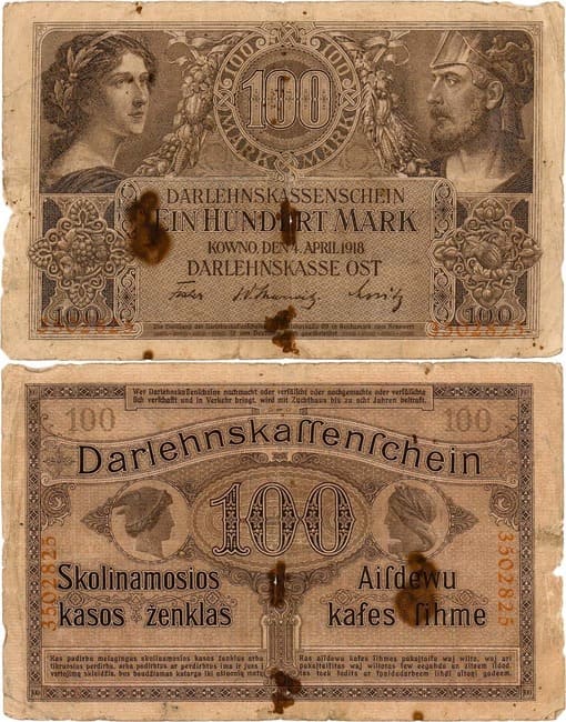 Ковно (Каунас). Номер 3502825. Выпуск 4 апреля 1918 года. Pick R133. F/VF-.