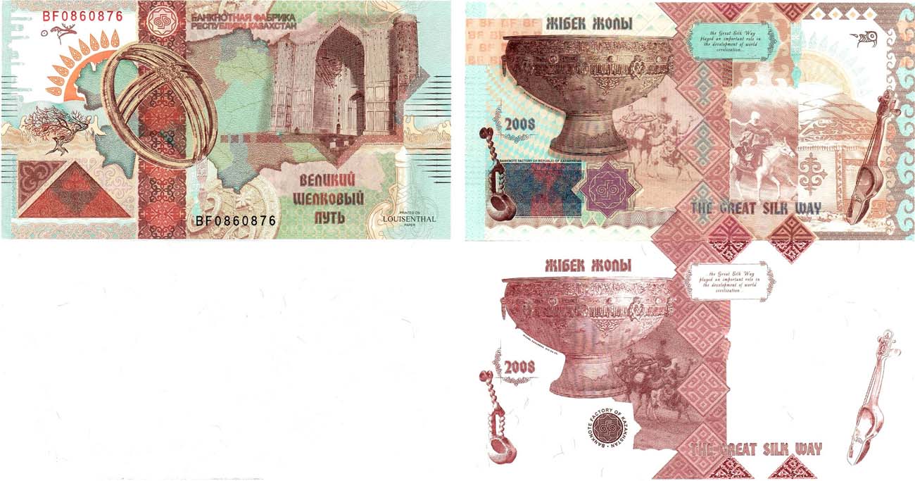 Одностороннее изображение аверса банкноты 2008 года, одноцветная печать, бумага с водяным знаком. UNC. Двусторонне изображение банкноты 2008 года. Бумага с водяным знаком. ГОЗНАК, без защитной полосы. UNC. UNC (пресс).