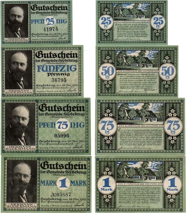 1 марка №05887 ; 75 пфеннингов №05096; 50 пфеннингов №36795; 25 пфеннингов №41974. AU/UNC.
