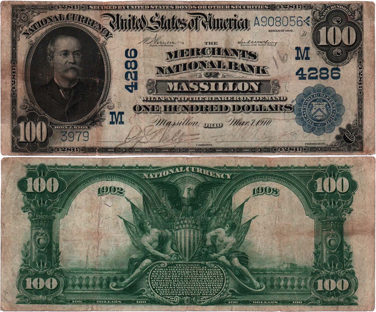 Серия М 4286 №А908056. Штат Огайо. Второй выпуск. Голубая серия. "1902-1908 " на оборотной стороне. Подписи рукописные. Pick S-1922. Friedberg S-1922. VF.