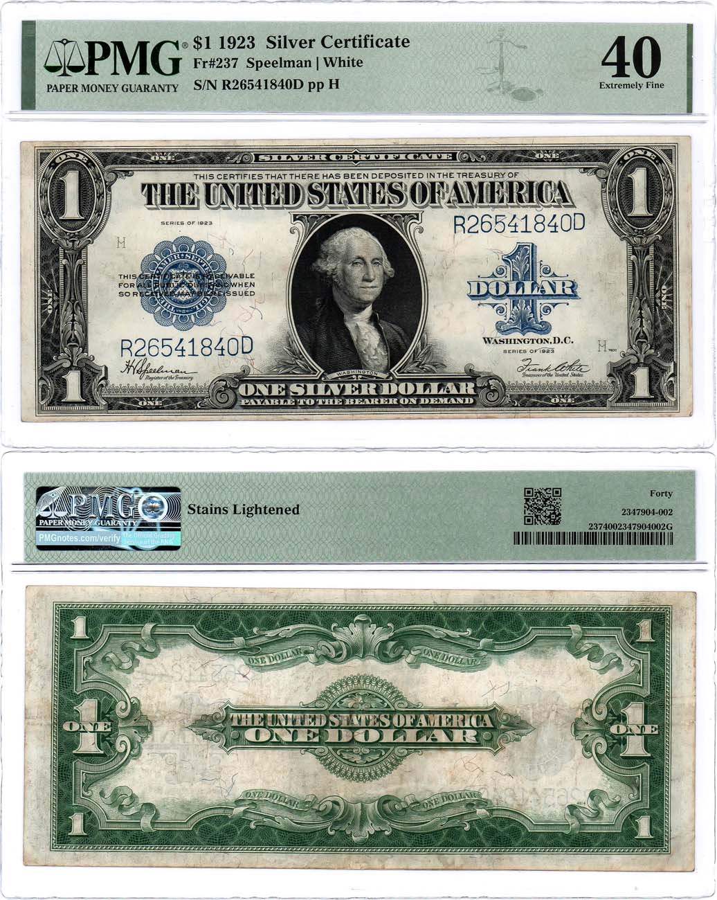 Серия R26541840D. United States Treasury. Серебряный сертификат, голубая серия. Подписи Speelman/White. Friedberg 237. Pick 342(1). 40 Extremely Fine.