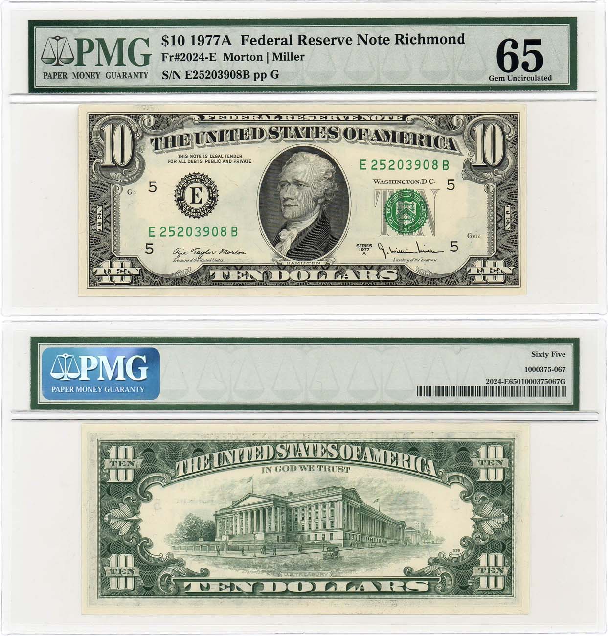 Ричмонд (E). Серия Е 25203908 В. Friedberg 2024-E. 65 Gem Uncirculated.