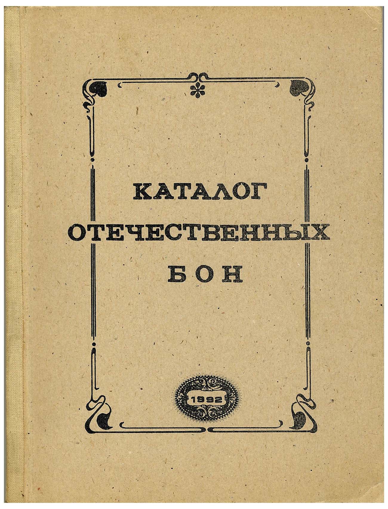 Ростов-на-Дону, 1992 г. Каталог является попыткой обобщения информации об отечественных бонах, накопившейся к 1992 году в советской и зарубежной литературе. Каталог состоит из трех частей: денежные знаки правительств России, РСФСР, СССР, денежные знаки местных выпусков периода 1914-1924 годов и денежные знаки отечественной войны 1941-1945, которые делятся на подразделы. Много исторических справок, содержит таблицы с соответствием боны каталогам Чучина, Кириченко.