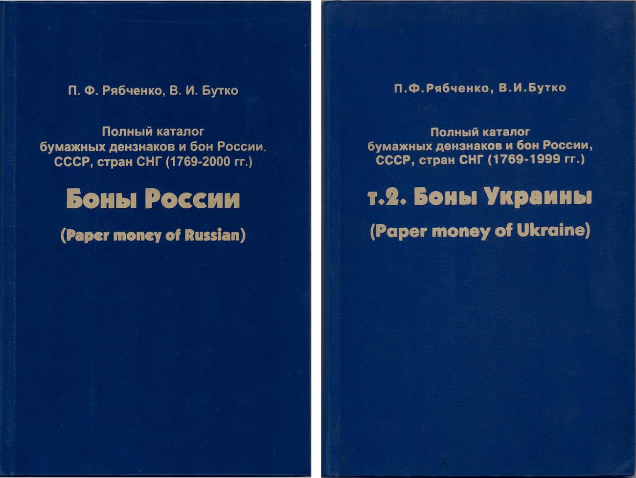 Классический труд, необходимая база для любого собирателя бумажных денежных знаков России. Оба тома с автографом П.Ф. Рябченко.