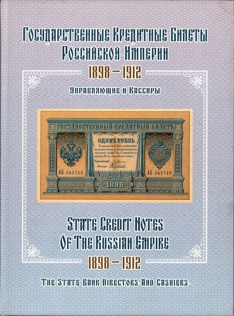 СПБ, 2007 г. Издание содержит образцы подписей управляющих государственного банка и кассиров на государственных кредитных билетах Российской империи образцов 1898–1912 гг. Данные систематизированы по подписям управляющих и кассиров. Огромное по полноте знаний исследование, первая попытка подобной систематизации.